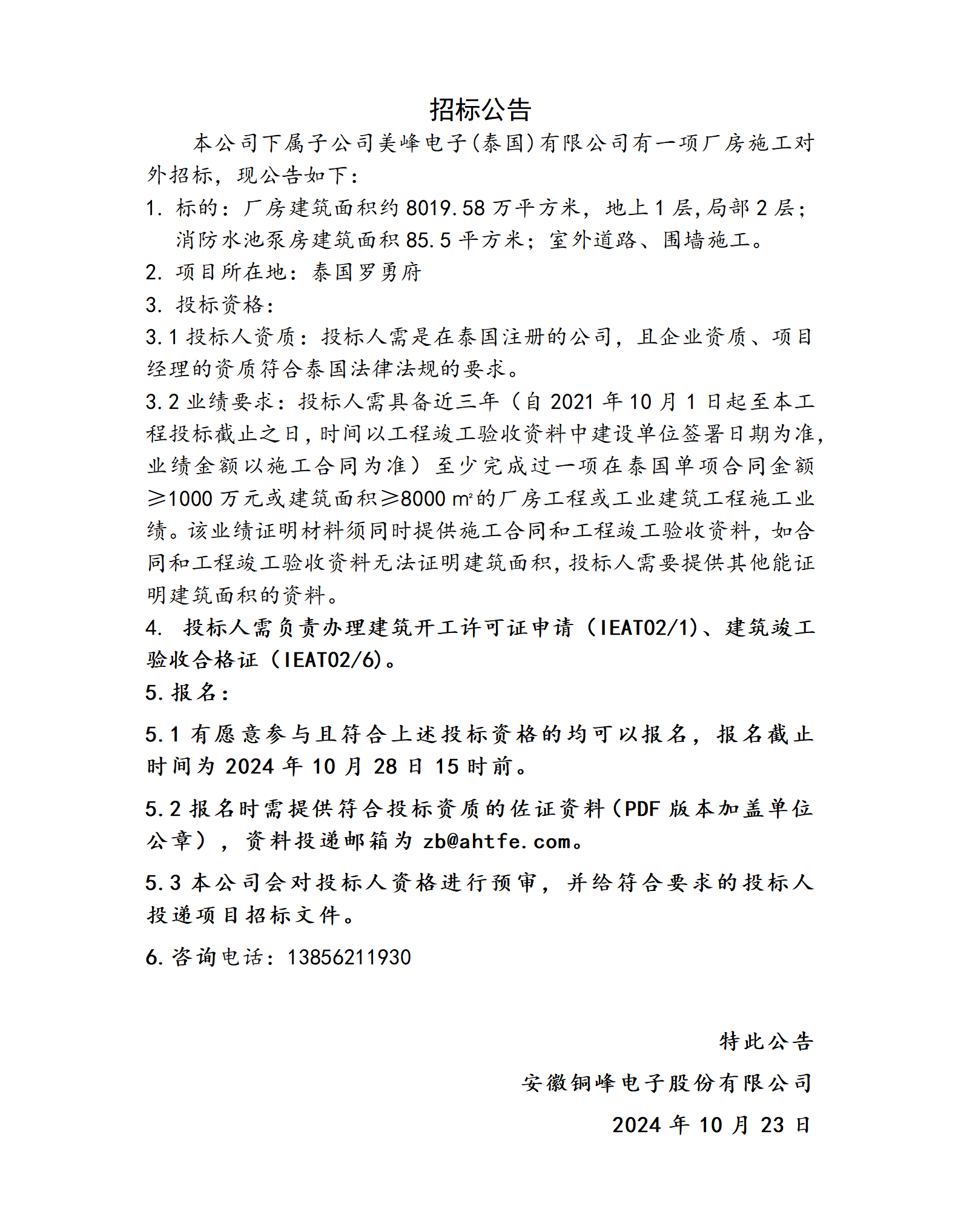 新能源用電子元器件廠房項目電梯招標公告